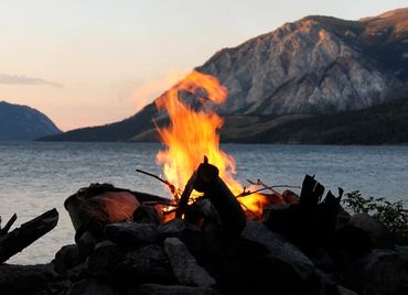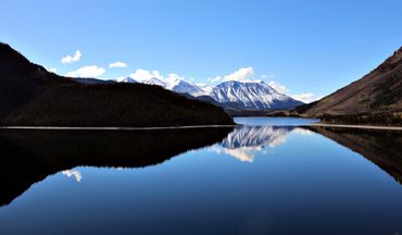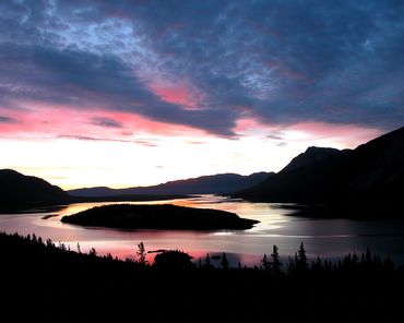 Further up, we pass Lake Tutshi , surrounded by soaring mountains and breathtaking vistas. It is here that we often see Mountain Goats on the peaks. Past that, it's the Yukon border, at 60 degrees north latitude.