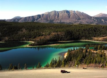The landscape on Montana Mountain shows a great deal of evidence of another minerals "rush" from the early days of the 20th century. Bove Island is next, and another great photo stop. Next is the village of Carcross, Yukon Territory, rich in native tradition with several world class totems, and two nice spots for lunch. Just North, we see the Carcross Desert (Yes, a desert in the Yukon Territory!) Known locally as the "Smallest Desert in the World", it's a fun place to take our shoes off on nice days. Our turnaround point is the incredible Emerald Lake.